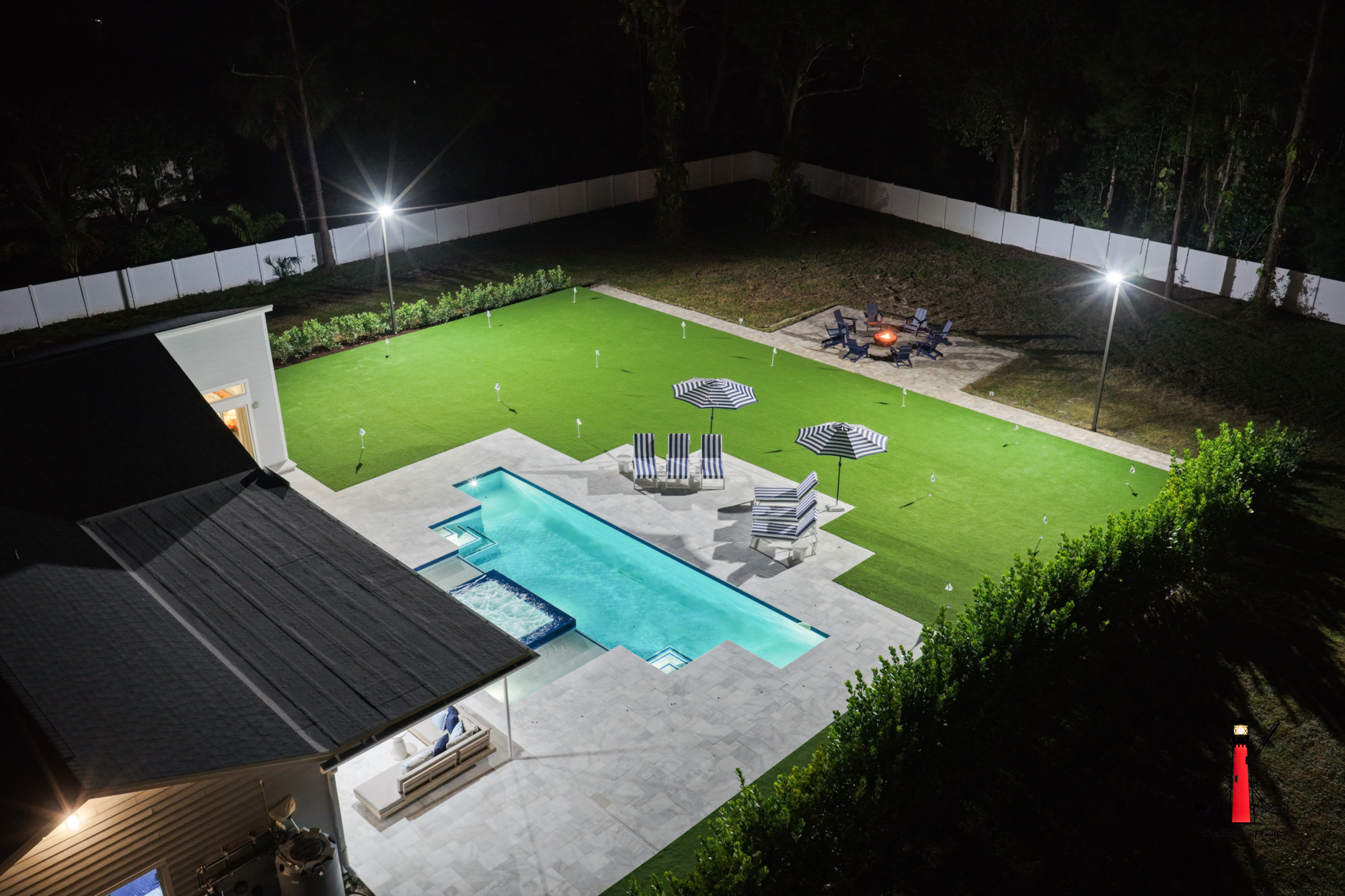 Nestled within a serene and private setting, this extraordinary residence is a golfer’s paradise, thoughtfully designed by renowned amateur golfer Bobby Fox. Surrounded by lush natural beauty, the home boasts a resort-style pool and spa, complemented by a pristine private putting green. Minutes from breathtaking beaches, Riverbend State Park, upscale dining, boutique shopping, and vibrant nightlife, this exceptional retreat offers an effortless blend of luxury, comfort, and refined relaxation.